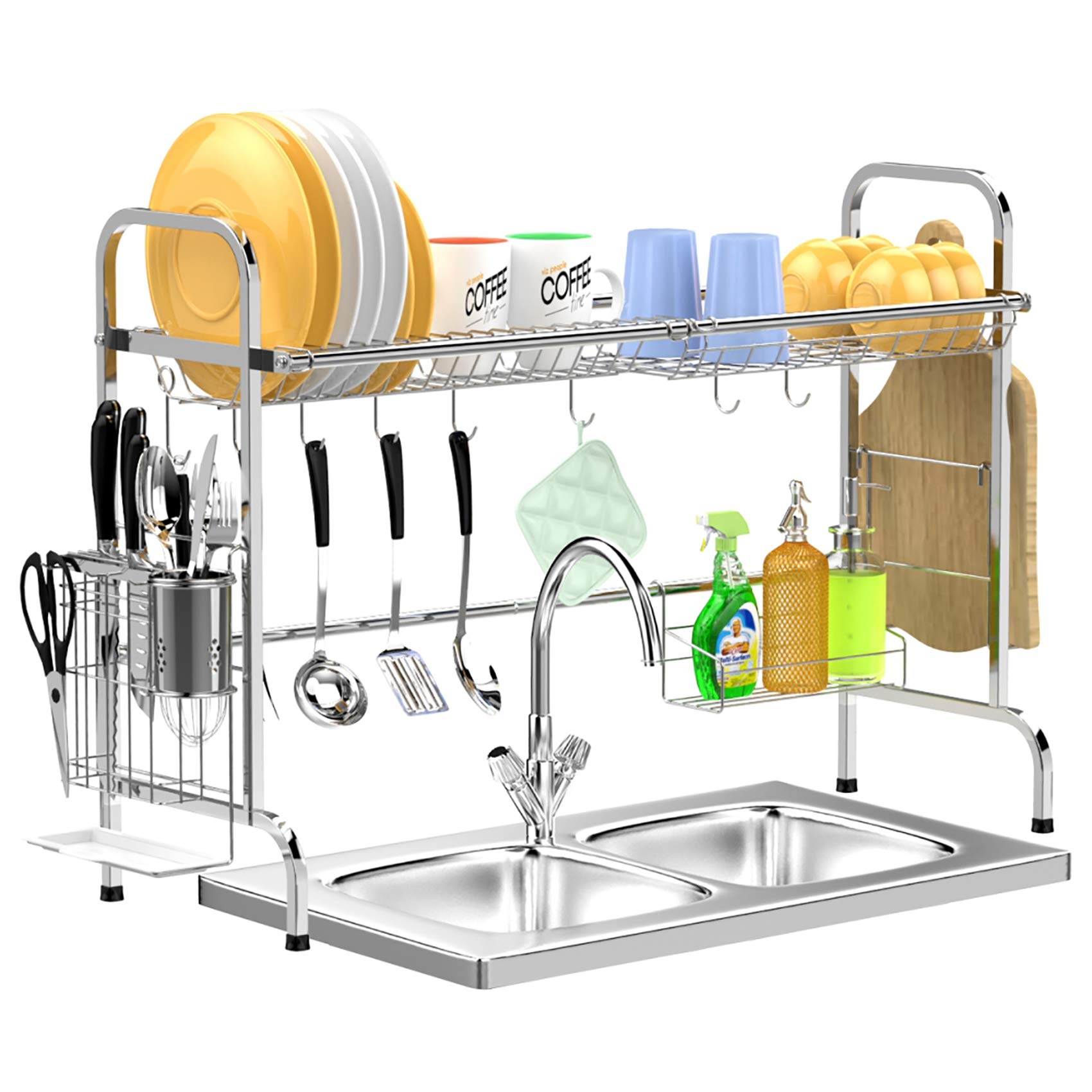 Surpahs over the sink dish drying rack. (13) total ratings 13, $16.98 new. Sold by kharid le online. The first tier can hold up to 20 bowls and 18 dishes, the second tier can hold cups or fruit & vegetable, and all your forks, spoons, knife, chopping board and other. 4.8 out of 5 stars.